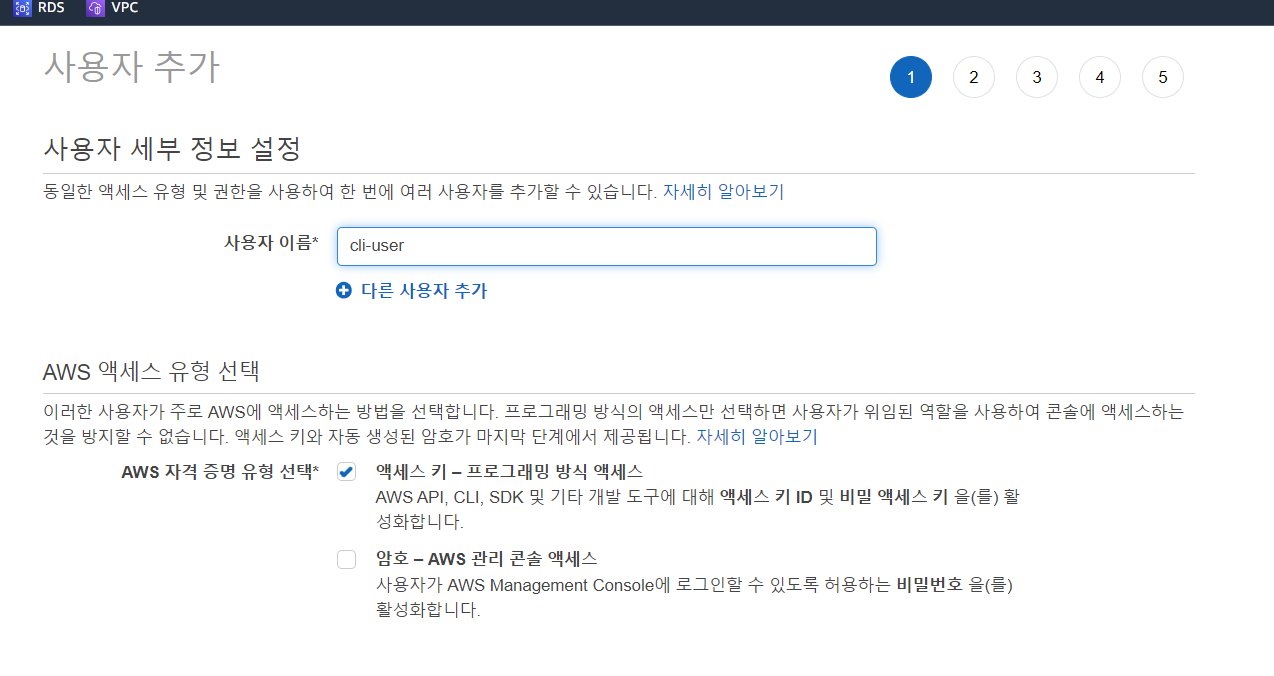 두 번째 체크는 액세스키와 시크릿키가 자동으로 생성되는 것.