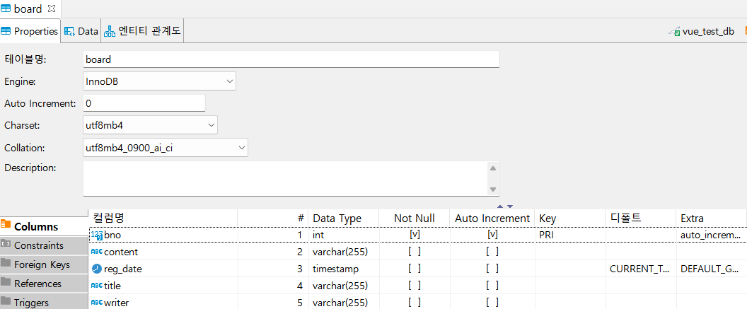 | [Vue.js] Spring Boot 게시판 만들기 (1) - Database 생성 (0) | 2023.03.22 |