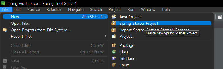 스프링 부트는 Spring Starter Project로 프로젝트를 생성한다.