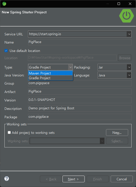 type에 maven과 gradle을 선택할 수 있는데 둘 다 어디서 본 단어이다.