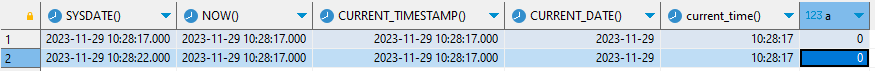 select SYSDATE(), NOW(), CURRENT_TIMESTAMP(), CURRENT_DATE(), current_time(),