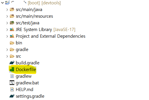 프로젝트 루트 디렉토리에 Dockerfile을 생성한다.