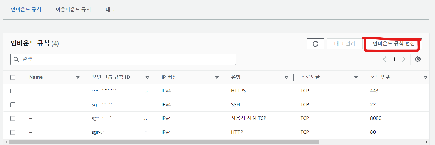 EC2 8080포트 보안그룹 추가